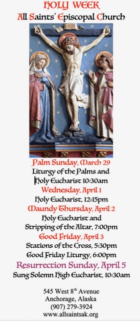 The mission of All Saints’ Episcopal Church is to respond to, and share, the Love of God in Christ Jesus through service, education and worship (work, study, pray).